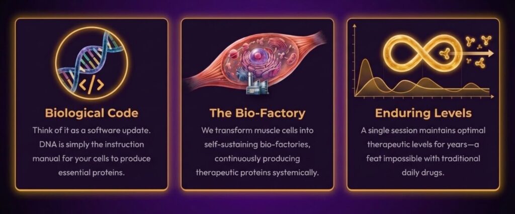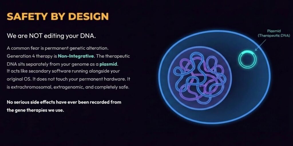 Only the pure plasmid is introduced into the deltoid muscle of one arm followed by micro-pulses to open pores for DNA entry.